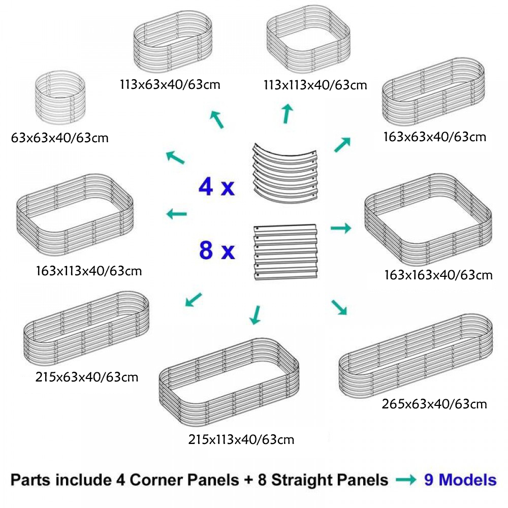 Изготовлено из высококачественного алюминированного цинкового листа толщиной 0,55 мм (55% алюминия, 43,4% цинка, 1,6% кремния). Сочетая барьерную защиту алюминия с коррозионной стойкостью цинка, его коррозионная стойкость в 3–6 раз выше, чем у обычных оцинкованных изделий . Конструкция стабильна и не деформируется, оставаясь прочной даже при заполнении грунтом и растениями.